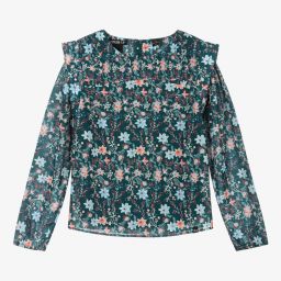 Teen girls ivory, orange, pink and red floral blouse by NIK&NIK, made in polyester chiffon. Lined in super-soft viscose, it has beautiful pintuck pleating on the bodice and capped shoulder trims. There is a back zip fastening, elasticated cuffs and a black logo tab on the hem.