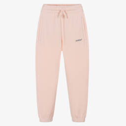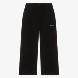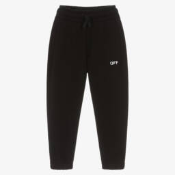Boys cotton black logo joggers by Off-White are crafted with a luxurious touch, featuring a striking neon yellow logo on the front and stylish diagonal stitching at the back. Made from soft jersey, they provide comfort with a stretchy drawstring waist and practical side pockets. Suitable for adding a designer flair to casual outings, these joggers are in limited quantities, so it's your last chance to buy this unique piece.