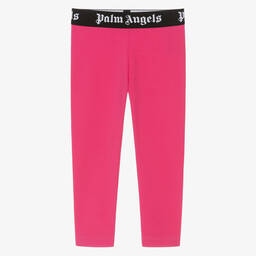 Navy blue cotton jersey leggings for girls by Italian fashion house Palm Angels. Full length, they have an elasticated waistband for comfort, with jacquard logo branding for a signature designer look.