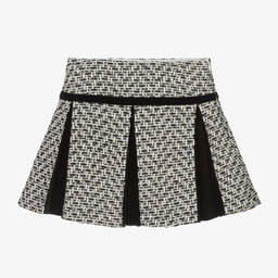 The girls glittery tweed skirt by Patachou is an elegant piece crafted from soft tweed with shimmering accents. Featuring a zip and button fastening, it has faux ivory pocket details with velvet and diamanté buttons for added charm. Its pleated hemline and adjustable waist provide comfort, while the lightweight cotton lining adds a touch of luxury. Suitable for special occasions, this skirt is available in limited quantities, making it a must-have addition to any wardrobe.