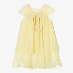 Girls blue bow chiffon dress by Patachou is a romantic and floaty piece exclusive to Childrensalon. Made from soft chiffon, this dress features a wide sheer collar that sweetly covers the shoulders, and a beautiful bow detail on the front adorned with faux pearl and crystal embellishments. Lined in lightweight cotton, it has a lovely layered hem and fastens with a concealed zip on the back. Limited quantities available, last chance to buy this charming dress.