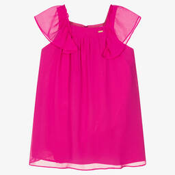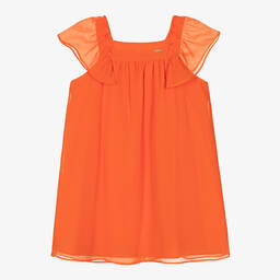 Exclusive to Childrensalon, this effortless green dress for girls is by Patachou. Crafted in luxuriously soft and floaty chiffon, this special occasion style has sheer, flutter sleeves and a relaxed shape. It fastens smoothly with a concealed zip on the back for a seamless finish and is lined in soft cotton for comfort. The neckline is beautifully decorated with a shiny gold logo charm for a discreet, designer detail.