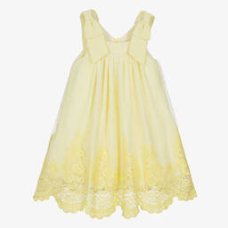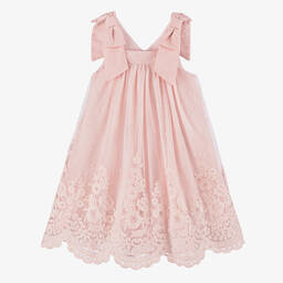 In a pretty pastel shade of turquoise green, girls green embroidered tulle dress by Patachou is a stunning choice for special occasions. Made in soft tulle and lined in chiffon, it features delicate embroidered dots and floral embroidery around the hem. Statement bows on the straps add a romantic flair, while the concealed zip ensures a neat fit. Lined in soft cotton for comfort, this dress is a must-have with limited quantities available.