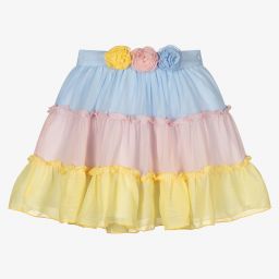 A charming grey tweed skirt for girls by Patachou, woven in metallic gold thread. In a stylish wrap design, this skirt has pearl button fastenings at the front, with dark beige velvet trims. There is an adjustable waist for a lovely fit, and a soft cotton voile lining.