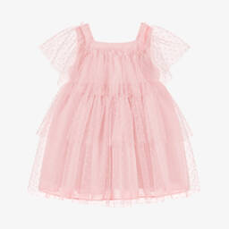 Girls pale green tulle dress by Patachou is perfect for making memories at special events. Crafted with a delicate chiffon base, it features an elegant ruffled and tiered tulle overlay adorned with charming flocked dots. The dress includes a neat grosgrain-trimmed zip at the back for easy fastening. Its lightweight cotton lining ensures comfort for any occasion. Limited quantities available, offering a unique opportunity to own this exquisite piece for spring and summer gatherings.
