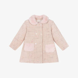 This Navy Blue bouclé coat by Patachou, exclusive to Childrensalon, is a stylish choice for girls. Crafted from soft bouclé fabric, it features striking red braided trims and a charming bow detail. The coat's elegant silhouette is enhanced by a back vent and gold crest button fastenings. Comfortably lined in satin, it includes concealed front pockets for practicality. Limited quantities available, making it a lovely addition to any autumn or winter outing.