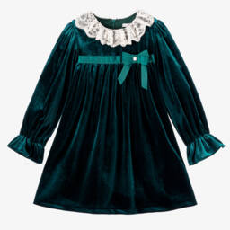 A girls pale velvet lace dress by Patachou offers a touch of elegance with its sparkly velour fabric, featuring a delicate lace collar and grosgrain ribbon bow. The full skirt and gently puffed sleeves with elasticated cuffs add to its charm, while the soft cotton lining provides comfort. Lovely for special occasions, it fastens seamlessly with a concealed back zip. Limited quantities available, so secure yours today.