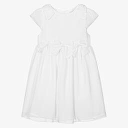 Exclusive to Childrensalon, this gorgeous pale blue dress for younger girls is by Patachou. Made in soft lightweight chiffon, it has cute capped sleeves, with fixed bows on the shoulders and waist. The full, gathered skirt has a tulle frill on the cotton lining for extra volume.