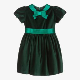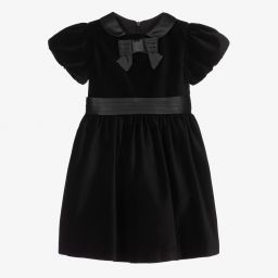 Red dress for girls is by Patachou, made with soft, mid-weight velvet. This special occasion dress has a full skirt and is lined in lightweight cotton with a layer of tulle for volume. It has a red satin round collar and pleated sash and bow trims. It has pretty puff sleeves and fastens with a concealed zip on the back.
