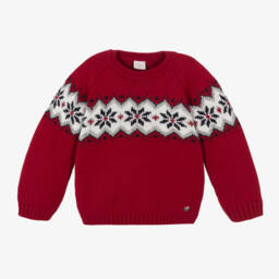 Girls beige Fair Isle knit jumper by Paz Rodríguez offers classic charm with its soft wool blend and intricate pattern. Crafted for comfort and warmth, it features ribbed trims and a stylish silver logo disc at the hem. Suitable for layering during cooler months, this piece brings timeless elegance to any wardrobe. Limited quantities available.