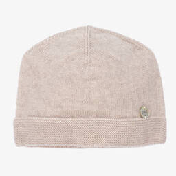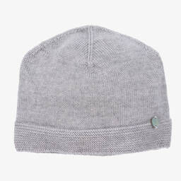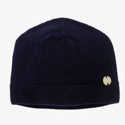 Adorable blue wool hat for baby boys and girls by Paz Rodriguez, with the brand's mother-of-pearl logo charm on the front.