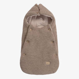 Pink lace trim nest for baby girls by Paz Rodríguez, crafted in a soft cotton blend with elegant ivory lace detailing. It features light padding for added warmth and a soft plumeti cotton lining. The nest includes a charming mother-of-pearl logo charm, and secures with ties and a zip, offering convenience for car seat or stroller use. When unfolded, it provides a comfortable play surface. Limited quantities available—an ideal choice for your little one this season.