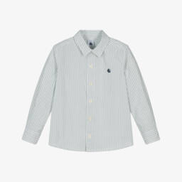 • Petit Bateau-Boys Sage Cotton Striped Shirt | Childrensalon Outlet