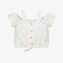 Girls blue botanical top by Petit Bateau showcases a delightful floral print, perfect for the spring and summer seasons. Crafted from soft woven cotton, the blouse offers a lightweight and breathable fit. The relaxed silhouette and short sleeves ensure comfort and ease of movement, making it ideal for both casual outings and special occasions. Limited quantities available, so don't miss the chance to add this charming piece to a young wardrobe.