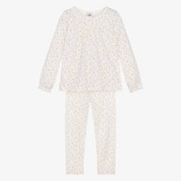 Girls white pyjama set with fruit motifs by Petit Bateau offers a delightful touch to bedtime. Crafted from soft, breathable cotton, the pyjamas feature a charming fruit pattern on a fresh white background. The top showcases delicate ruffle details on the shoulders, adding a sweet touch, while the shorts ensure comfort with an elasticated waistband. Perfect for warm spring and summer nights, this set is a cosy, stylish choice. Limited quantities available, so seize the opportunity to enhance bedtime comfort.