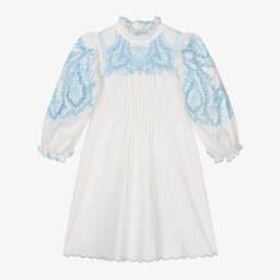 The white tulle floral maxi dress for girls by Petite Amalie captivates with its enchanting elegance. Adorned with soft green and pink florals, the fine tulle is tiered to create a voluminous silhouette that is both graceful and stylish. Detailed with delicate lace trims and a charming collar, the sheer long sleeves provide a touch of modesty. Easy to wear, it features a gentle V-shaped back and a soft cotton lining for added comfort. Limited quantities available, ideal for special occasions.
