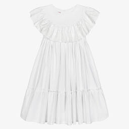 The girls white shirred collar bodysuit by Phi Clothing is a charming addition to any wardrobe. Crafted from soft cotton jersey, it features intricate navy blue embroidery and a delightful poplin ruffle around the neckline. Practical popper fastenings allow for easy dressing, making it suitable for everyday wear. Limited quantities available, don't miss out on this elegant piece.