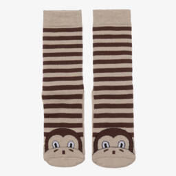 Designed by Playshoes, these green and navy blue slipper socks for boys and girls are ideal for comfortable indoor play. Made from soft and stretchy textile with orange faux leather trims, the flexible padded soles have practical non-slip grippers on the bottom. Printed with a vibrant crocodile pattern, one sock has an adorable crocodile and goldfish design for a fun and quirky look.