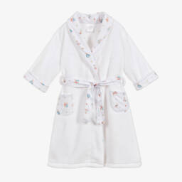From Playshoes, this girls blue heart fleece gown is perfect for younger girls. Crafted from super soft fleece, it features a charming mini heart pattern in white and a cosy hood for added warmth. Red embroidered hearts adorn one front pocket, and it is designed with a convenient button fastening and a detachable tie belt. Limited quantities available, so grab yours now for ultimate comfort and style.