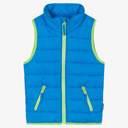 Boys turquoise puffer gilet by Playshoes features fuchsia pink trims and zips. This silky smooth gilet is lightly padded, with a high neck and a chin guard on the top of the zip for added comfort. It also includes two zipped hand pockets, making it practical for everyday wear or as an extra layer under a coat. Limited quantities available, last chance to buy.