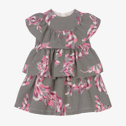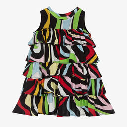 The fuchsia pink AOP frills dress for girls by PUCCI is crafted with organic cotton poplin in a vibrant blend of pink, orange, and red. Featuring tiered layers and a one-shoulder design, it showcases the iconic Fontane geometric motifs, adding a touch of elegance. Perfect for spring and summer, this above-the-knee dress offers ease and comfort with its zip fastening. Limited quantities available, making it a must-have for a stylish look.