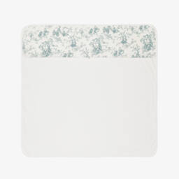 Girls ivory and pink velour blanket by Pureté Du... Bébé features a charming toile de jouy print on a soft twill panel. Crafted from a cotton blend, the velvety front and soft jersey back provide ultimate comfort. An elegant mother-of-pearl charm and delicate pleats add a touch of sophistication. Lovely for pram outings or as a nursery accessory, limited quantities available.
