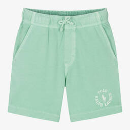 Boys blue cotton jersey shorts by Ralph Lauren are crafted from soft and lightweight sweatshirt cotton. These cool and casual shorts feature front and back pockets along with a drawstring waist for a snug fit. A circular white pony logo on one leg adds a signature touch. Last chance to buy with limited quantities available.