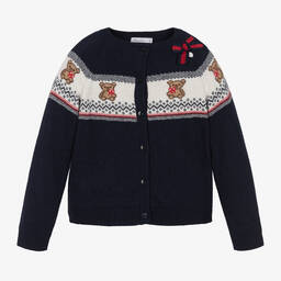 This charming yellow knit cardigan for girls by Ralph Lauren is crafted in a soft cotton and wool blend, suitable for the cooler seasons. Featuring a traditional Fair Isle design in vibrant blue and green around the shoulders, it adds a touch of classic elegance. The cardigan has delightful mismatched buttons and a subtle grey logo near the hem. Limited quantities available, making it a must-have cosy addition for any wardrobe.