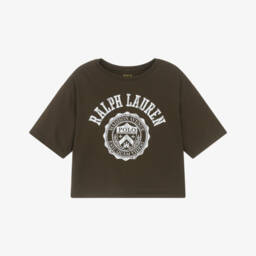 Casual green T-shirt for teen girls by Ralph Lauren, made in soft cotton jersey. This comfortable top has a relaxed fit and dropped shoulders, with a white varsity logo print on the front for a classic look.