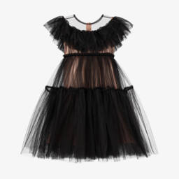 The ivory tulle dress by RaspberryPlum is a stunning choice for any special event. Crafted from soft tulle, it features a sleeveless design with a dramatic ruffle around the sheer bodice and a full, tiered skirt adorned with velvet trims. The dress is lined with viscose for added comfort and secures with an exposed zip at the back. Perfect for parties or formal occasions, limited quantities are available, offering a unique opportunity to own this exquisite piece.