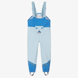 Boys green rain trousers feature a playful Spike the Dino design by Roarsome. Crafted from smooth, waterproof fabric, these trousers are perfect for rainy days. They include adjustable shoulder straps, elasticated waist, and ankle cuffs with stirrups for a comfortable fit. The aqua seal zips and reflective trims ensure practicality and safety. A fun dino character on the front pocket adds charm. Limited quantities available, so grab these stylish rain trousers while stocks last.
