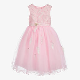 A beautiful ivory tulle dress set for girls by Romano is crafted from layers of lightweight tulle for extra volume. It features elegant faux feathers and pretty faux pearl detailing, with a satin waistband adorned with a detachable sparkling jewel and pearl brooch. Smaller sizes come with a frilled headband, while larger sizes include a coordinating bag. Last chance to buy this exquisite dress set in limited quantities.
