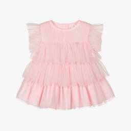 Girls striped cotton dress by A Dee features a charming tiered design in soft pink stripes, perfect for spring and summer occasions. Crafted from a comfortable cotton blend, it offers a lightweight and breezy feel. The dress is adorned with a delicate frill neckline and a sparkling diamanté logo, paired with matching knickers for a complete look. With button fastenings, it ensures easy dressing and adds a touch of elegance. Limited quantities available—secure this delightful piece now.