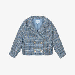 Girls navy blue and red check blazer by Abel & Lula is crafted in a luxurious tweed effect fabric with a hint of sparkle. Comfortably lined with soft cotton, this elegant cropped blazer features a stylish navy blue collar and faux front pockets accented with ivory, navy blue, and gold braid. Secure with gleaming gold buttons for a chic finish. Great choice for adding a touch of sophistication to any outfit. Limited quantities available, so don't miss your chance.