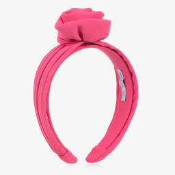 A girls yellow rose hairband by Abel & Lula, featuring a flexible band covered in soft twill with a pretty pleated design and a striking rose decoration on top. Perfect for adding a splash of colour to any outfit, it is super fun and girly. Limited quantities available, so don't miss the chance to buy this charming accessory.