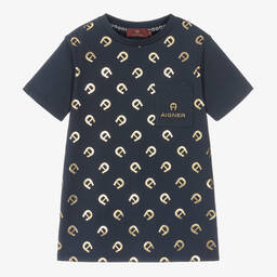 This boys white cotton T-shirt by AIGNER features a stylish Aop logo design in metallic gold, adding a touch of luxury to casual wear. Made from soft cotton jersey, it provides ultimate comfort and breathability. The T-shirt showcases the brand's signature 'A' horseshoe logos and a gold-embroidered designer name on the chest pocket. Perfect for everyday wear, this is a last chance to buy due to limited quantities available.