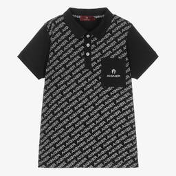The teen boys white cotton polo shirt by AIGNER features black logo prints on the front for an instantly recognisable look. Made from soft cotton jersey, this smart-casual top includes a pointed collar, front button fastenings, and a chest pocket with signature 'A' horseshoe logo embroidery. Perfect for a stylish yet comfortable outfit, limited quantities available.