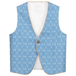 Teen boys white cotton waistcoat by Alviero Martini, with a light beige Geo map print. Fully lined for comfort, this stylish top has dark beige Geo map trims, matching buttons and an adjustable back strap.