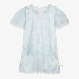 AMIKI ChildrenОчаровательная шелковая пижама с цветочным узором синего цвета