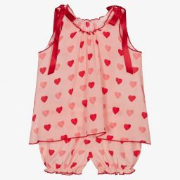 AMIKI ChildrenКороткая белая пижама из хлопка с кружевом для девочек