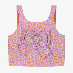 Lovely blue cropped blouse for girls, by British brand Angel's Face. Cute and girly, it is crafted in beautifully soft brocade with shimmery silver thread. The front is decorated with an oversized popper fastening bow, embellished with a shiny gold and silver diamanté heart buckle for added glamour. Fastening with a shiny gold button on the back, it has a stylish cut-out detail and elasticated panel for comfort.
