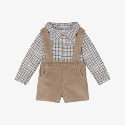 This boys cotton knit beige outfit by Babidu offers a delightful blend of comfort and style. Crafted from soft cotton, it features a charming moss stitch texture with ribbed trims. The sweater is designed with convenient back button fastenings, and the shorts are easy to pull on, making it suitable for the cooler months. Limited quantities available, so seize the opportunity to add this cosy set to your collection.