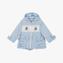 Beau KiDBaby Girls Pale Blue Corduroy Coat with Teddy Bears & Ruffles