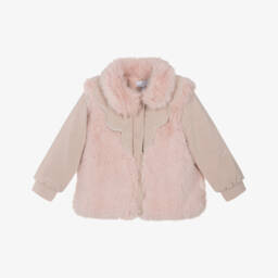 Beau KiDBaby Girls Pale Pink Corduroy Coat with Teddy Bears & Ruffles