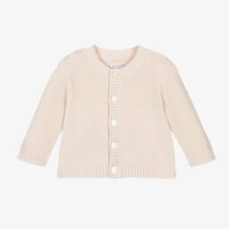 Beige knitted cardigan crafted for baby girls by Emile et Rose offers timeless elegance. Made from soft, pure cotton, it features a charming moss stitch pattern on the shoulders and sleeves, complemented by ribbed trims and a round neckline. Pearly button fastenings add a touch of classic style, making it an essential layering piece for the spring and summer seasons. Limited quantities available, so secure this beautiful addition to the wardrobe today.