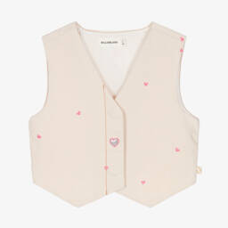 Girls ivory and pink knitted vest by Billieblush features charming heart motifs and a playful diamond pattern. The soft, cosy fabric ensures warmth and comfort, ideal for layering over a shirt or dress during the cooler months. The ribbed trim adds a touch of elegance, making it perfect for both casual outings and special occasions. With limited quantities available, it's the last chance to buy this delightful piece for a stylish autumn/winter wardrobe.