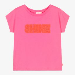 Girls neon pink T-shirt by Billieblush, made in soft cotton jersey. In a casual boxy fit, it has a neon orange 'SHINE' appliqué on the front, with a ribbed neckline.