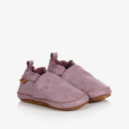 Designed by Danish brand EN FANT for younger boys, a blue pair of slippers with a delicate leaf design. Made from beautifully soft and supple leather, these comfortable indoor shoes have soft suede soles, ideal for surfaces like wooden floors. Also suitable as a pre-walker shoe for babies, they slip on easily with their stretchy elasticated backs. They are finished with a lovely towelling lining for added comfort.