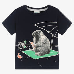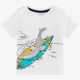 Playful red T-shirt for little boys by Spanish brand Boboli, made in soft and comfortable cotton jersey. It has a monochrome tiger printed on the front, enjoying a relaxed day on the beach.