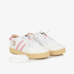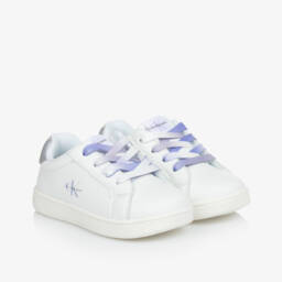 KARL LAGERFELD KIDSРоскошные кожаные кроссовки белого цвета для девочек